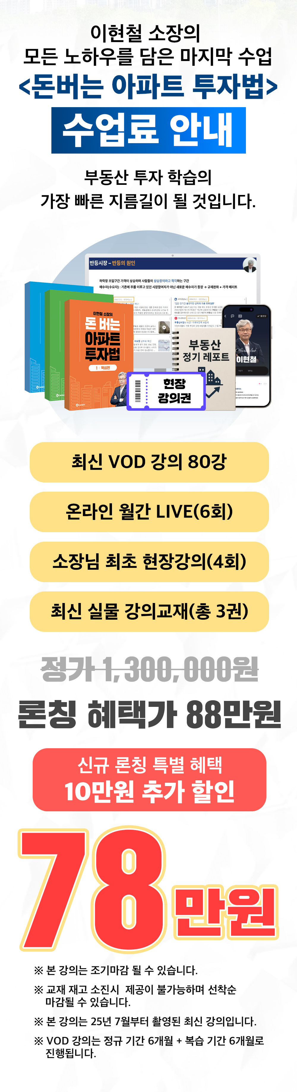 | 돈 버는 아파트 투자 수업(VOD+월간 LIVE 6회+최초 현장강의 4회+평생 소장 혜택+강의 교재 총 3권) |